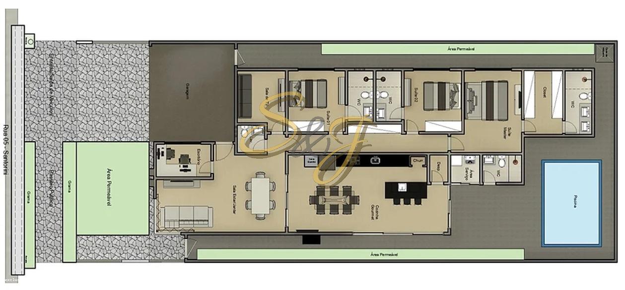 CASA TERREA COM TRÊS SUITES A VENDA NO PARQUE BRASIL 500- COND. SANTORINI - PAULÍNIA SP