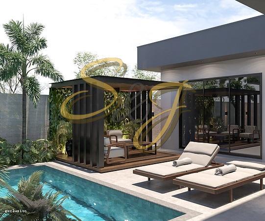 3 suítes, Cozinha Integrada com Área gourmet, Sala de Estar/TV com pé direito Duplo, Piscina, Área de Serviço, Ar Condicionado em todos os ambientes, Sistema de aquecimento solar, Metais Deca ou Celite, Móveis nos quartos, banheiros, cozinha e lavanderia, Persianas automatizadas.