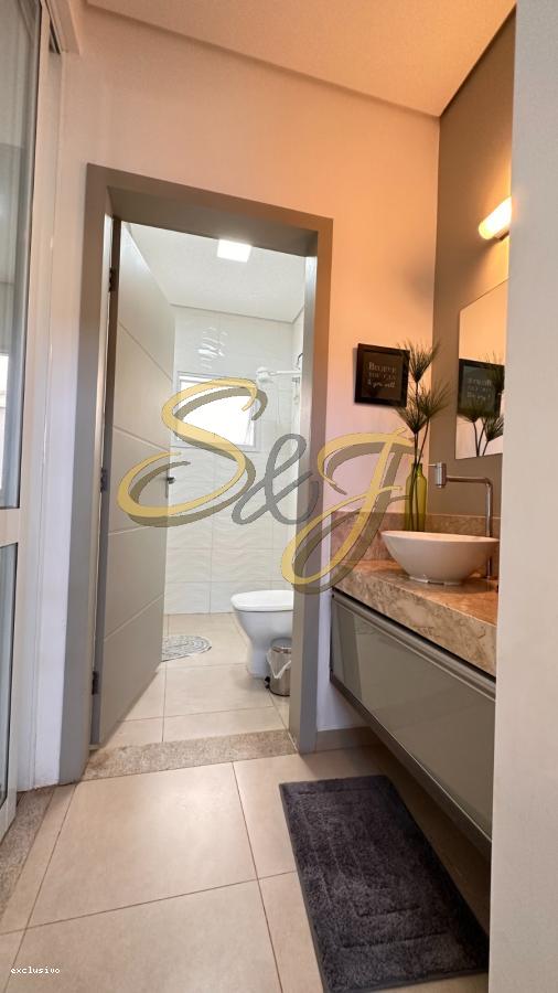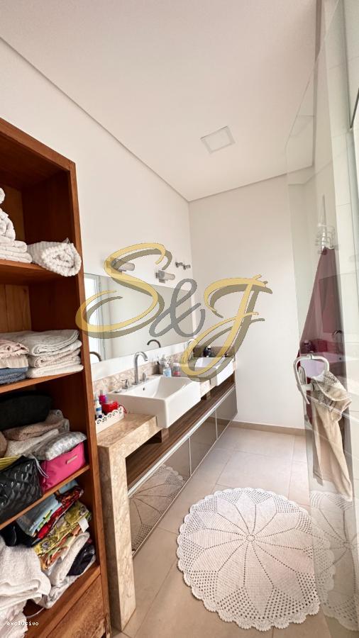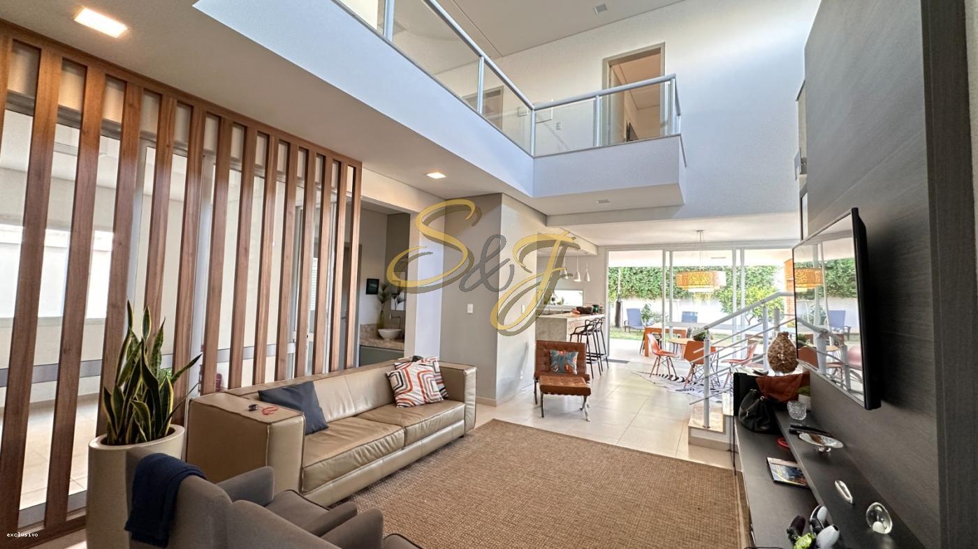 Os três dormitórios são extremamente confortáveis, sendo um deles uma suíte master com closet espaçoso e varanda privativa, e dois dormitorios estilo suite americana A casa possui quatro banheiros modernos e bem distribuídos para atender a todas as necessidades da família. O sistema de aquecimento solar garante economia e sustentabilidade, enquanto o ar condicionado proporciona conforto térmico durante todo o ano. As persianas elétricas adicionam um toque de modernidade e praticidade ao dia a dia. Além disso, a segurança é prioridade aqui: o condomínio conta com portaria 24 horas e vigilância constante para garantir total tranquilidade aos moradores.
